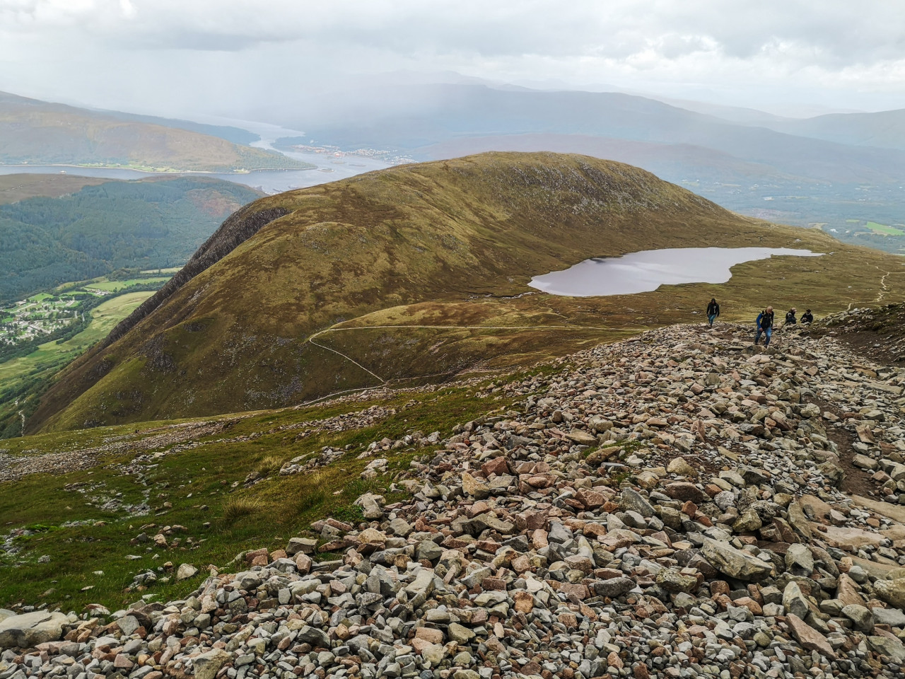 The Ben Nevis Mountain Path, also known as the Pony Track, attracts the most tourists and is the most popular route to the summit. The route can be accessed one of three ways: the Ben Nevis Visitor Centre, the Ben Nevis Inn, or the Glen Nevis Youth Hostel. The route follows the same way down as it does the ascent and is roughly a walk length of 9 miles. This route’s level of difficulty is graded at very hard.